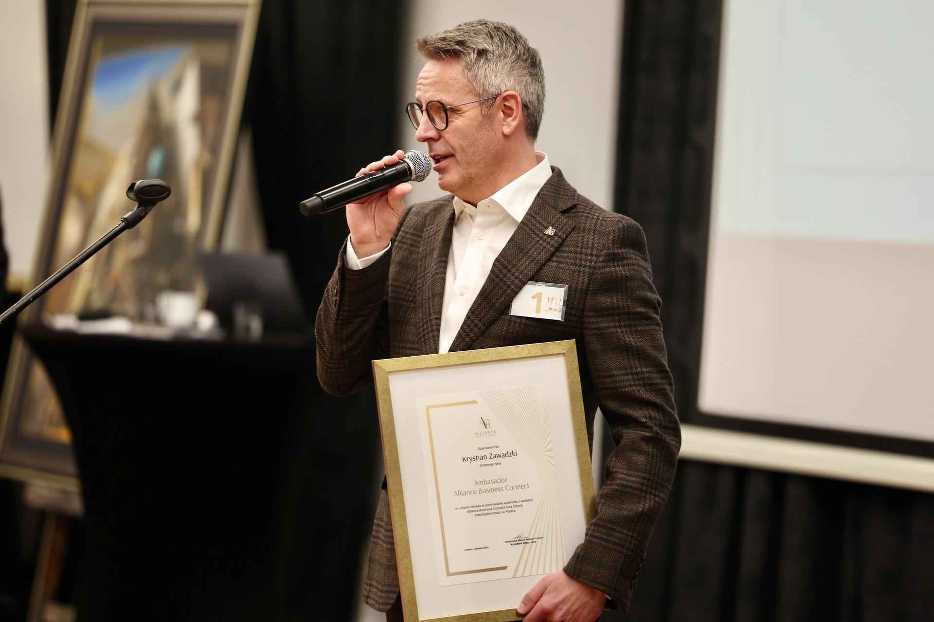 Jednym z kluczowych momentów wieczoru było uhonorowanie Ambasadora Alliance Business Connect 2025. Tytuł ten otrzymał Krystian Zawadzki, który w minionym roku przekazał największą liczbę rekomendacji do Sojuszu ABC. Wyróżnienie to podkreśla znaczenie zaangażowania, odpowiedzialności i aktywnego budowania relacji w ramach społeczności.