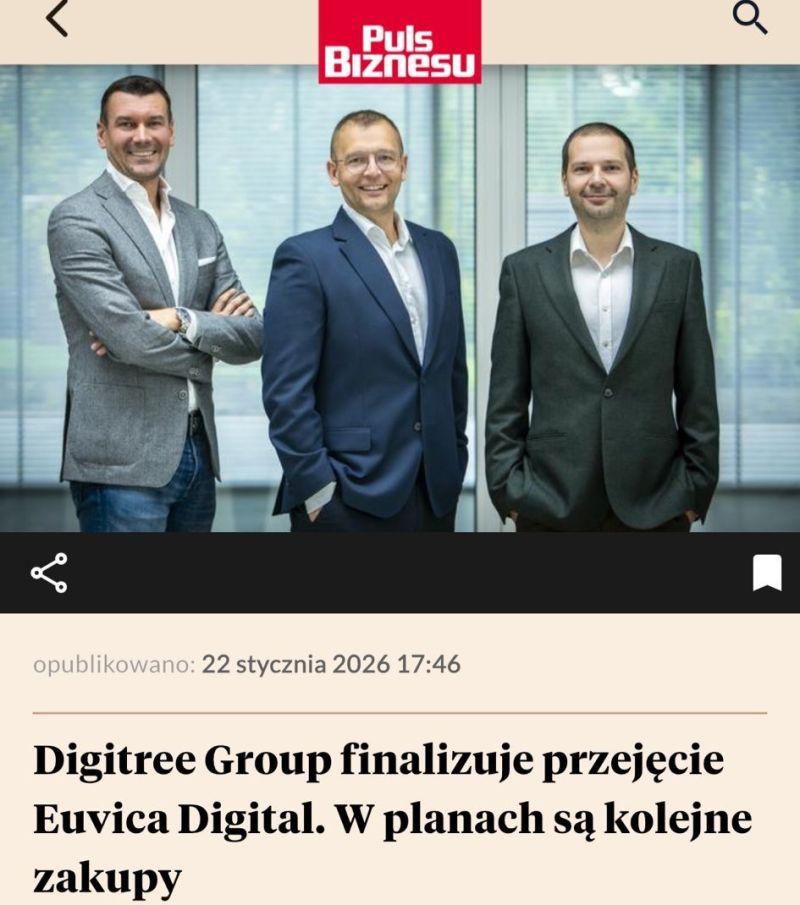 "Digitree Group finalizuje przejęcie Euvica Digital. W planach są kolejne zakupy"