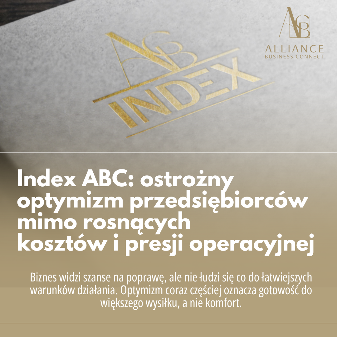 Pierwsza edycja Indeksu ABC pokazuje ostrożny optymizm przedsiębiorców zrzeszonych w Alliance Business Connect, mimo rosnących kosztów i presji operacyjnej.